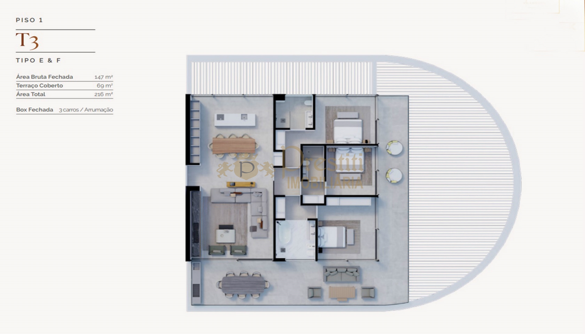 Todos os apartamentos T3 são vendidos completamente equipados e mobilados de referência de grande qualidade, adaptado ao conceito de empreendimento turístico (dá ainda para Golden Visa).