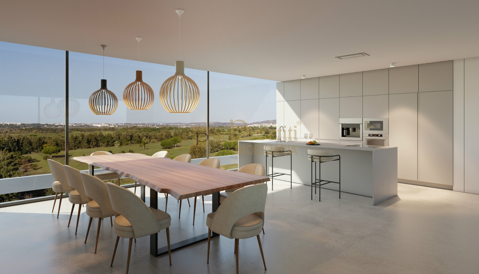 Os matérias e acabamentos foram escolhidos com rigor, contemplando tons neutros e modernos, design apelativo, superfícies generosas, janelas minimalistas até ao teto, grandes varandas com zona de refeições e lounge.